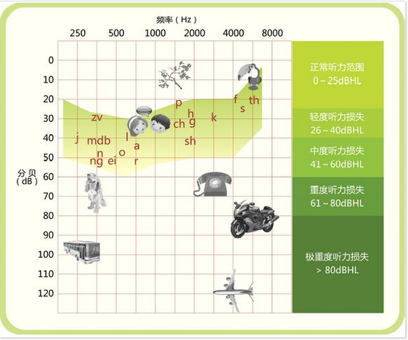 由常見聲音的頻譜圖和六音的頻率范圍我們可以發現,林氏六音覆蓋的頻率范圍非常廣,如果這六個音能夠明確地辨識,則日常生活接觸到的大部分語言和聲音都不成問題。家長們一定要仔細觀察孩子對這六個音的反應并認真記錄,及時、準確地和聽力師說明,會對調配助聽設備有很大幫助。