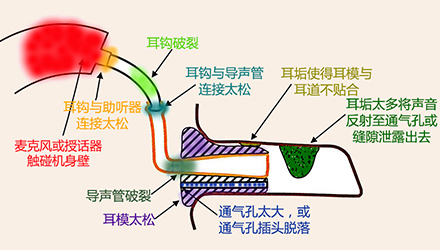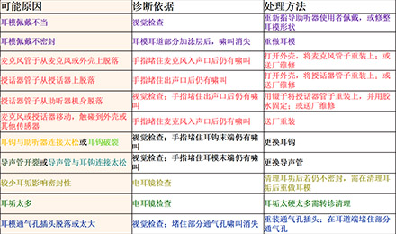 <span style="font-size:16px;"> 嘯叫,一直是引起助聽器使用者不滿的一大原因,也是驗配師在助聽器調試時最為棘手的難題之一。</span></p><p><span style="font-size:16px;"> 通常,嘯叫分內部嘯叫和外部嘯叫。內部嘯叫常由內部零件故障引起,而外部嘯叫則是與助聽器外殼或耳模,助聽器調試等有關。</span></p><p style="text-align: center;"><span style="font-size:16px;"><img src="/upfiles/201810100140556872.jpg" alt="" /><br /></span></p><p><span style="font-size:16px;"> 我們常常說的外部嘯叫是在聲音被麥克風拾取、放大器放大、授話器轉換后,又從各種縫隙(如外殼與耳道的縫隙、通氣孔)中“跑”出來,又“跑”進去,如此反復多次,使得聲音越來越大,產生“吱吱吱”的惱人嘯叫。</span></p><p><span style="font-size:16px;"> 以助聽器的角度來看,shou話器把聲音授給耳朵聽,當用“授”,即授話器。</span></p><p><span style="font-size:16px;"> 接下來將分別針對定制式(ITE/ITC/CIC)和耳背式(BTE)助聽器的嘯叫問題,跟著產生嘯叫的路徑,一一“攻破”嘯叫難題。注意,這里不說助聽器調試,只尋嘯叫路徑,并“堵死”嘯叫“通路”,讓進入助聽器的聲音“不走回頭路”。</span></p><p><span style="font-size:16px;"> 1、ITE/ITC/CIC助聽器</span></p><p><span style="font-size:16px;"> 先來看看ITE/ITC/CIC助聽器可能發生嘯叫的路徑。</span></p><p><span style="font-size:16px;"> 圖1里是一個定制式助聽器佩戴于外耳道內的示意圖,各種顏色的字和相應顏色的標記展示了發生嘯叫的各種情況。</span></p><center><span style="font-size:16px;"><img alt="" src="/upfiles/201810100142273990.png" width="440" height="250" /></span></center><p></p><p style="text-align: center;"><span style="font-size:16px;">圖1:ITE/ITC/CIC助聽器發生嘯叫的路徑一覽</span></p><p style="text-align: left;"><span style="font-size:16px;"> 例如,紅色表示“麥克風管子脫落”,這屬于助聽器內部零件脫落、故障,為內部嘯叫。</span></p><p><span style="font-size:16px;"> 橙色表示“外殼佩戴太松”,這屬于外殼不密封的聲音泄露,為外部嘯叫。</span></p><p><span style="font-size:16px;"> 那如何檢查出是這些原因,并對問題進行相應處理呢?請對照表1中的“診斷依據”和“處理方法”查看。</span></p><center><span style="font-size:16px;"><img alt="" src="/upfiles/201810100142337254.png" width="520" height="250" /></span></center><p></p><p style="text-align: center;"><span style="font-size:16px;">表1:ITE/ITC/CIC助聽器產生嘯叫的可能原因及對應的診斷依據、處理方法</span></p><p><span style="font-size:16px;"> 例如,當發現“手指堵住麥克風入聲口后仍有嘯叫”,可推斷原因是“麥克風管子從麥克風或外殼上脫落”或“麥克風或授話器移動,觸碰到外殼或其他傳感器”,這時的處理方法是“送廠維修”。</span></p><p><span style="font-size:16px;"> 2、BTE助聽器</span></p><p><span style="font-size:16px;"> 學會了看ITE/ITC/CIC助聽器的一圖一表,再來看看BTE助聽器的嘯叫路徑圖(圖2),以及表2中羅列的可能原因、診斷依據和處理方法,相信看起來更加輕松、直觀、一目了然。</span></p><center><span style="font-size:16px;"><img alt="" src="/upfiles/201810100142383483.png" width="440" height="250" /></span></center><p></p><p style="text-align: center;"><span style="font-size:16px;">圖2:BTE助聽器發生嘯叫的路徑一覽</span></p><center><span style="font-size:16px;"><img alt="" src="/upfiles/201810100142449945.png" width="462" height="273" /></span></center><p></p><p style="text-align: center;"><span style="font-size:16px;">表2:BTE助聽器產生嘯叫的可能原因及對應的診斷依據、處理方法</span></p><p><span style="font-size:16px;"> 更多詳情請登錄m.xhfkj.cn。</span></p>" />