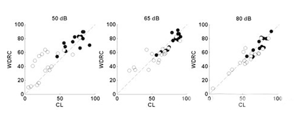 <span style="font-size:16px;"> 重度聽力損失是500Hz、1000Hz、2000Hz和4000Hz平均聽閾在61dB HL和80dB HL之間的聽力損失。重度聽損患者更趨向于:</span></p><p><span style="font-size:16px;"> (1)聽力損失時間較久;</span></p><p><span style="font-size:16px;"> (2)有助聽器佩戴史;</span></p><p><span style="font-size:16px;"> (3)言語分辨率較低;</span></p><p><span style="font-size:16px;"> (4)噪音環境中交流困難。</span></p><p><span style="font-size:16px;"> 1、重度聽力損失的特點</span></p><p><span style="font-size:16px;"> 60dB HL是單純外毛細胞損傷和內外毛細胞共同損傷的分界點,內毛細胞受損預示著重度聽力損失,這類患者的頻率選擇能力降低,在相關頻率范圍內難以分辨兩種聲音。這是噪聲環境下交流困難的主要原因。</span></p><p><span style="font-size:16px;"> 簡單來說,頻率選擇能力越低,自身降噪能力越差,噪聲下識別信號的能力也就越差。</span></p><center><span style="font-size:16px;"><img alt="" src="/upfiles/20181016012659501.png" width="440" height="250" /></span></center><p></p><p><span style="font-size:16px;"> 2、選擇合適的放大策略</span></p><p><span style="font-size:16px;"> 反饋抑制:這項技術在傳統方法的基礎上有更好的減少嘯叫的效果。</span></p><p><span style="font-size:16px;"> 指向性麥克風:有指向性功能的助聽器可以明顯提高信噪比(SNR)。現在自適應指向性麥克風廣泛地應用于大功率耳背機中。</span></p><p><span style="font-size:16px;"> 對于噪聲下言語交流困難的重度聽力損失患者,選配帶有指向性麥克風的助聽器效果顯著。</span></p><p><span style="font-size:16px;"> 聽力學家對重度聽損人士的指向性麥克風做過獲益度測試,發現平均言語識別能力提升了14%。</span></p><p><span style="font-size:16px;"> 重度聽損患者使用指向性功能時必須保證一定低頻增益,否則他們會感覺聲音不夠洪亮。</span></p><center><span style="font-size:16px;"><img alt="" src="/upfiles/201810160127134771.png" width="440" height="250" /></span></center><p></p><p><span style="font-size:16px;"> 寬動態范圍壓縮線路(WDRC):</span></p><p><span style="font-size:16px;"> 如下圖,白點是重度聽力損失患者的輔音識別得分,黑點是輕度至中度聽損患者的輔音識別得分;每位受試者佩戴四通道的耳背機,驗配采用NAL公式;測試言語聲強度分別為50dB SPL、65dB SPL和80dB SPL;比較WDRC和線性輸出壓縮限制(CL)兩種線路的得分。</span></p><center><span style="font-size:16px;"><img alt="" src="/upfiles/201810160127198326.png" width="600" height="240" /></span></center><p></p><p><span style="font-size:16px;"> 等分位于對角線附近代表兩種處理方式效果相似,得分位于對角線上方表示WDRC線路效果更好,而下方則表示CL線路效果更好。</span></p><p><span style="font-size:16px;"> 對重度聽損患者來說,輸入輕聲和中等聲時WDRC線路比CL線路效果更好;輸入響聲時兩種線路的區別并不大。所以使用WDRC線路可以獲得比CL線路更高的言語識別率。</span></p><p><span style="font-size:16px;"> 壓縮速度:壓縮越深可聽度越高,因為患者可以聽到更寬的聲音響度范圍。</span></p><p><span style="font-size:16px;"> 快反應壓縮(起效和釋放時間很短)可以降低元音(響度較大)增益并提高輔音(響度較小)增益,從而提高可聽度。</span></p><p><span style="font-size:16px;"> 所以理論上來講,對于重度聽損人士,使用多通道助聽器、低壓縮拐點、高壓縮比、音節壓縮,可以最大程度提高驗配效果。</span></p><center><span style="font-size:16px;"><img alt="" src="/upfiles/201810160127304305.png" width="600" height="500" /></span></center><p></p><p><span style="font-size:16px;"> 但壓縮越深就意味著有聲音失真越大,音節壓縮丟失了重要言語信息,導致輔音分辨不清。若要保留這些信息,則需要慢反應壓縮(起效和釋放時間較長)。</span></p><p><span style="font-size:16px;"> 最好的情況是在提高可聽度的同時還保證信號不失真,但目前很難實現,找到二者的平衡點是最佳的選配方案。</span></p><center><span style="font-size:16px;"><img alt="" src="/upfiles/20181016012736476.png" width="440" height="250" /></span></center><p></p><p><span style="font-size:16px;"> 上圖為一組重度聽力損失患者選配快速和慢速WDRC線路的言語識別率對比。</span></p><p><span style="font-size:16px;"> 在輸入聲級為50和65 dB SPL時,快反應壓縮線路的受試者得分明顯比慢反應壓縮線路的受試者差;在80 dB SPL輸入聲級下則并無明顯差別。</span></p><p><span style="font-size:16px;"> 對輕度和中度聽力損失患者來說,無論何種輸入聲級,兩種壓縮方式的得分都沒有明顯差別(并未在圖中顯示)。</span></p><p><span style="font-size:16px;"> 對極重度聽力損失患者來說,可聽度比其他任何信息都重要,快反應壓縮線路效果比慢反應壓縮線路更好。</span></p><p><span style="font-size:16px;"> 綜上所述,在使用多通道WDRC線路助聽器前提下,一定程度的可聽度是必須的,在這個基礎上要追求最低的失真(最低的壓縮比以及最慢的壓縮),才能達到最好的驗配效果。</span></p><p><span style="font-size:16px;"> 我們經常會遇到重度聽力損失患者,應該找到適合他們的驗配策略并提供心理和生理咨詢。</span></p><p><span style="font-size:16px;"> 助聽器選配的效果受到外周及中樞聽覺系統的能力限制,重度感音神經性聽力損失患者很少能在噪音環境中聽清。</span></p><p><span style="font-size:16px;"> 但是,通過仔細的驗配和回訪調試,我們依然可以取得很好的效果。重度聽力損失患者體現了聽覺系統的復雜性,提醒我們僅