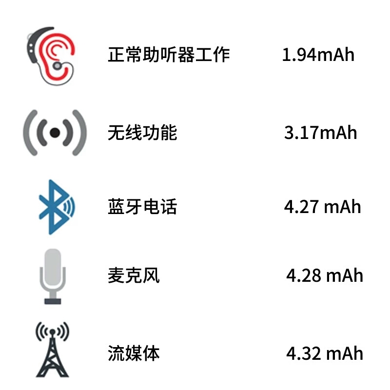 <span style="font-size:16px;"> “一粒助聽器電池可以用多久?”<br /> <a href="http://m.xhfkj.cn/listDetail.aspx?id=102202" target="_blank"><strong><span style="color:#3333ff;">剛戴助聽器不久,助聽器聲音變小,怎么辦?</span></strong></a><br /> 很多用戶在購買助聽器電池時都會問這個問題。其實,沒有一個準(zhǔn)確的答案可以適用所有助聽器佩戴者。國外有關(guān)調(diào)查*顯示,電池使用壽命的個體差異性很大,用戶反饋的使用時間只能落在一個很寬廣的范圍內(nèi),同樣的312電池有的長達(dá)12天,有的卻只有短短3天。<br /> 助聽器電池型號<br /> 助聽器電池使用壽命<br /> 103-10天3123-12天136-14天6759-20天<br /> 所以,了解電池使用壽命的最好方法是參考下面五大因素根據(jù)用戶的使用習(xí)慣來推算。<br /> 一、聽力損失程度<br /> 聽力損失越重,需要在擴(kuò)音部分消耗的電量就越大,電池壽命也越短。<br /> 二、聲音環(huán)境因素<br /> 周邊的噪音會影響電池壽命,安靜的圖書館環(huán)境比嘈雜的餐館或搖滾演唱會現(xiàn)場耗電要少。另外,如果助聽器音量調(diào)到“最大”也會過早地耗完電池的電量。<br /> 三、個人使用習(xí)慣<br /> 電池使用天數(shù)一般以每天使用8小時來估算。實際上,不同佩戴者一天使用的時長并不一樣,同一個佩戴者也不會每天使用的時長都一樣。總之,每天使用的時間越長,可以使用的天數(shù)就會越少。<br /> 四、助聽器功能差異<br /> 助聽器越先進(jìn),對電池電量的要求越高。一些常見的數(shù)字化功能,比如無線功能、FM設(shè)備使用、工作指示燈、工作提示音及功能按鍵等,在開啟后都會增加耗電。這無疑是電池使用壽命變短的一個重要原因。<br /></span><p><span style="font-size:16px;"> 按照耗電量從小到大排列,下圖列出了部分助聽器先進(jìn)功能對于電量的需求(毫安時)??梢钥吹剑c簡單工作相比,使用先進(jìn)功能的耗電量急劇上升。所以,如果您使用了助聽器的無線功能,那么電池使用壽命當(dāng)然會比助聽器僅簡單工作時要短很多。</span></p><span style="font-size:16px;"><img src="/upfiles/201811280858007479.jpg" alt="" /><br /><br /> 就拿瑞聲達(dá)助聽器舉例:<br /> 瑞聲達(dá)助聽器使用質(zhì)量可靠的品牌電池<br /> 瑞聲達(dá)助聽器以技術(shù)領(lǐng)先著稱,是世界上第一家開發(fā)出2.4Ghz無線助聽器來無中轉(zhuǎn)連接各種音源的品牌,也是世界上第一家具有MFi功能直連蘋果手機(jī)及其他蘋果設(shè)備的助聽器品牌。這些功能非常好用,但耗電也更多一些,建議使用高能、穩(wěn)定的進(jìn)口品牌電池以確保這些功能能正常使用。<br /> 五、自然環(huán)境因素<br /> 濕度降低時,電池可能因為過于干燥導(dǎo)致壽命縮短。<br /> 溫度降低時,電池電壓降低可導(dǎo)致壽命縮短。<br /> 濕度過高時,電池可能因受潮而干擾正常的放電。<br /> 海拔提升時,空氣中含氧量降低會增加耗電。<br /> 以上分享了影響助聽器電池壽命的5大因素,后續(xù)還會推出電池使用小貼士,讓您的助聽器電池發(fā)揮最佳性能,請持續(xù)關(guān)注。<br /></span><p><span style="font-size:16px;"> 以上內(nèi)容來自某著名助聽器電池生產(chǎn)商在英國所做的一項用戶調(diào)查。</span></p><p><span style="font-size:16px;"> 相關(guān)推薦閱讀:<a href="http://m.xhfkj.cn/listDetail.aspx?id=102236" target="_blank"><strong><span style="color:#3333ff;">助聽器電池你用對了嗎?教你如何選擇助聽器電池</span></strong></a></span></p><span style="font-size:16px;"> 聽覺有道助聽器價格:http://m.xhfkj.cn/products.html<br /><br /><br /><br /><br /> 發(fā)布于2018年11月28日 星期三<br /> 上午8:59分</span>" />