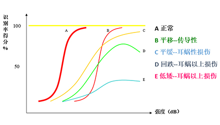 雖然聽力無多大影響,但是長期下來,聽力損失可能由C變為了D的回跌型,甚至是E的低矮型。也就是,即便聲音都聽到了,但由于言語識別能力大大下降,聽、不、清、楚!