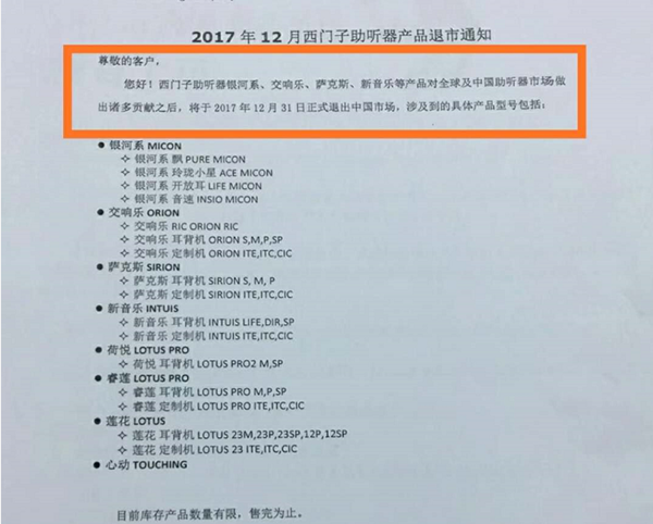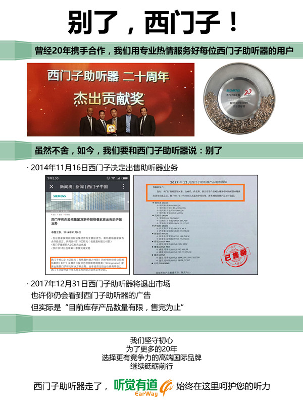 <p microsoft="" yahei="" ui="" simsun="" segoe="" tahoma="" helvetica="" sans-serif="" font-size:="" 14px="" text-align:="" center="" style="padding: 5px 0px; margin: 0px; color: rgb(51, 51, 51); font-family: "Microsoft YaHei UI", "Microsoft YaHei", SimSun, "Segoe UI", Tahoma, Helvetica, sans-serif; font-size: 16px; text-align: center;"><img src="http://m.xhfkj.cn/upfiles/201712110502357735.jpg" alt="" style="border: 0px;" /></p><p microsoft="" yahei="" ui="" simsun="" segoe="" tahoma="" helvetica="" sans-serif="" font-size:="" 14px="" text-align:="" center="" style="padding: 5px 0px; margin: 0px; color: rgb(51, 51, 51); font-family: "Microsoft YaHei UI", "Microsoft YaHei", SimSun, "Segoe UI", Tahoma, Helvetica, sans-serif; font-size: 16px; text-align: center;"><br /></p><p microsoft="" yahei="" ui="" simsun="" segoe="" tahoma="" helvetica="" sans-serif="" font-size:="" 14px="" text-align:="" center="" style="padding: 5px 0px; margin: 0px; color: rgb(51, 51, 51); font-family: "Microsoft YaHei UI", "Microsoft YaHei", SimSun, "Segoe UI", Tahoma, Helvetica, sans-serif; font-size: 16px; text-align: center;"><img src="http://m.xhfkj.cn/upfiles/201712201117438957.jpg" alt="" style="border: 0px;" /><br /></p><p microsoft="" yahei="" ui="" simsun="" segoe="" tahoma="" helvetica="" sans-serif="" font-size:="" 14px="" text-align:="" center="" style="padding: 5px 0px; margin: 0px; color: rgb(51, 51, 51); font-family: "Microsoft YaHei UI", "Microsoft YaHei", SimSun, "Segoe UI", Tahoma, Helvetica, sans-serif; font-size: 16px; text-align: center;"><br /></p><p microsoft="" yahei="" ui="" simsun="" segoe="" tahoma="" helvetica="" sans-serif="" font-size:="" 14px="" text-align:="" center="" style="padding: 5px 0px; margin: 0px; color: rgb(51, 51, 51); font-family: "Microsoft YaHei UI", "Microsoft YaHei", SimSun, "Segoe UI", Tahoma, Helvetica, sans-serif; font-size: 16px; text-align: center;">2014年11月16日西門子決定出售助聽器業務</p><p microsoft="" yahei="" ui="" simsun="" segoe="" tahoma="" helvetica="" sans-serif="" font-size:="" 14px="" text-align:="" center="" style="padding: 5px 0px; margin: 0px; color: rgb(51, 51, 51); font-family: "Microsoft YaHei UI", "Microsoft YaHei", SimSun, "Segoe UI", Tahoma, Helvetica, sans-serif; font-size: 16px; text-align: center;"> </p><center microsoft="" yahei="" ui="" simsun="" segoe="" tahoma="" helvetica="" sans-serif="" font-size:="" 14px="" style="color: rgb(51, 51, 51); font-family: "Microsoft YaHei UI", "Microsoft YaHei", SimSun, "Segoe UI", Tahoma, Helvetica, sans-serif; font-size: 16px;"><img src="http://m.xhfkj.cn/upfiles/20171211050740709.jpg" alt="" style="border: 0px;" /><br /></center><center microsoft="" yahei="" ui="" simsun="" segoe="" tahoma="" helvetica="" sans-serif="" font-size:="" 14px="" style="color: rgb(51, 51, 51); font-family: "Microsoft YaHei UI", "Microsoft YaHei", SimSun, "Segoe UI", Tahoma, Helvetica, sans-serif; font-size: 16px;"><br /></center><p microsoft="" yahei="" ui="" simsun="" segoe="" tahoma="" helvetica="" sans-serif="" font-size:="" 14px="" text-align:="" center="" style="padding: 5px 0px; margin: 0px; color: rgb(51, 51, 51); font-family: "Microsoft YaHei UI", "Microsoft YaHei", SimSun, "Segoe UI", Tahoma, Helvetica, sans-serif; font-size: 16px; text-align: center;">2017年12月31日西門子助聽器將正式退出中國市場</p><p microsoft="" yahei="" ui="" simsun="" segoe="" tahoma="" helvetica="" sans-serif="" font-size:="" 14px="" text-align:="" center="" style="padding: 5px 0px; margin: 0px; color: rgb(51, 51, 51); font-family: "Microsoft YaHei UI", "Microsoft YaHei", SimSun, "Segoe UI", Tahoma, Helvetica, sans-serif; font-size: 16px; text-align: center;"> </p><center microsoft="" yahei="" ui="" simsun="" segoe="" tahoma="" helvetica="" sans-serif="" font-size:="" 14px="" style="color: rgb(51, 51, 51); font-family: "Microsoft YaHei UI", "Microsoft YaHei", SimSun, "Segoe UI", Tahoma, Helvetica, sans-serif; font-size: 16px;"><img src="http://m.xhfkj.cn/upfiles/201712110508305244.png" alt="" style="border: 0px;" /><br /></center><center microsoft="" yahei="" ui="" simsun="" segoe="" tahoma="" helvetica="" sans-serif="" font-size:="" 14px="" style="color: rgb(51, 51, 51); font-family: "Microsoft YaHei UI", "Microsoft YaHei", SimSun, "Segoe UI", Tahoma, Helvetica, sans-serif; font-size: 16px;"><br /></center><p microsoft="" yahei="" ui="" simsun="" segoe="" tahoma="" helvetica="" sans-serif="" font-size:="" 14px="" text-align:="" center="" style="padding: 5px 0px; margin: 0px; color: rgb(51, 51, 51); font-family: "Microsoft YaHei UI", "Microsoft YaHei", SimSun, "Segoe UI", Tahoma, Helvetica, sans-serif; font-size: 16px; text-align: center;">銀河系、交響樂、薩克斯、新音樂、荷悅、睿蓮、蓮花、心動……</p><p microsoft="" yahei="" ui="" simsun="" segoe="" tahoma="" helvetica="" sans-serif="" font-size:="" 14px="" text-align:="" center="" style="padding: 5px 0px; margin: 0px; color: rgb(51, 51, 51); font-family: "Microsoft YaHei UI", "Microsoft YaHei", SimSun, "Segoe UI", Tahoma, Helvetica, sans-serif; font-size: 16px; text-align: center;">西門子助聽器系列產品悉數退市</p><p microsoft="" yahei="" ui="" simsun="" segoe="" tahoma="" helvetica="" sans-serif="" font-size:="" 14px="" text-align:="" center="" style="padding: 5px 0px; margin: 0px; color: rgb(51, 51, 51); font-family: "Microsoft YaHei UI", "Microsoft YaHei", SimSun, "Segoe UI", Tahoma, Helvetica, sans-serif; font-size: 16px; text-align: center;"> </p><center microsoft="" yahei="" ui="" simsun="" segoe="" tahoma="" helvetica="" sans-serif="" font-size:="" 14px="" style="color: rgb(51, 51, 51); font-family: "Microsoft YaHei UI", "Microsoft YaHei", SimSun, "Segoe UI", Tahoma, Helvetica, sans-serif; font-size: 16px;"><img src="http://m.xhfkj.cn/upfiles/201712110509096639.jpg" alt="" style="border: 0px;" /><br /></center><p microsoft="" yahei="" ui="" simsun="" segoe="" tahoma="" helvetica="" sans-serif="" font-size:=