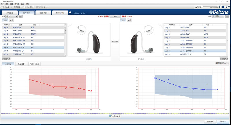 由驗配師將你的聽力檢測圖輸入電腦,通過處方公式選擇、補償參數選擇、軟件程序設定、個性化調試選出適合你的助聽器,最終確定您適合配戴的助聽器;將調好的助聽器進行助聽器佩戴效果試聽。